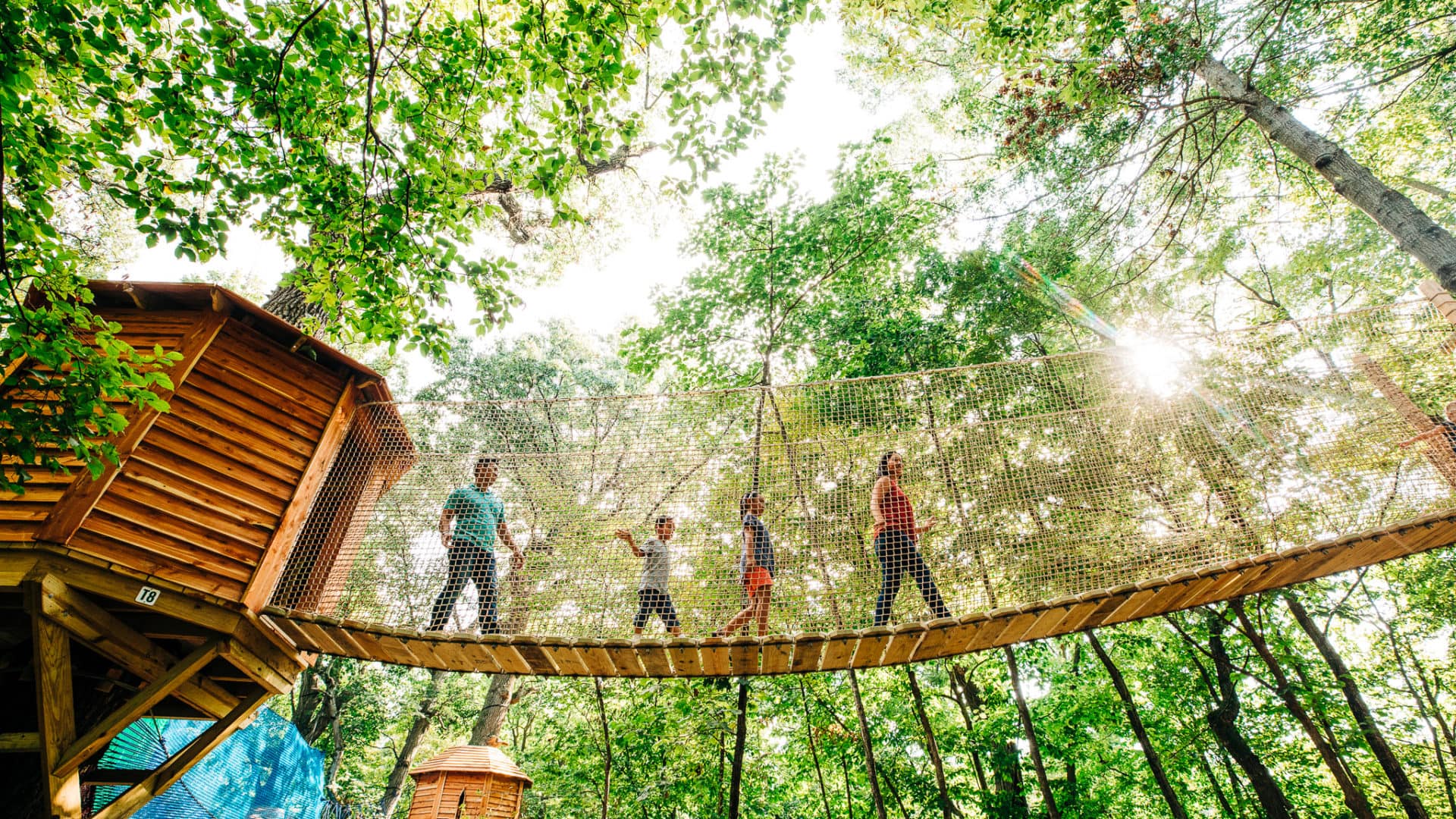 Once I arrive at the Arbor Day Farm, I head straight to Tree Adventure to hike its forested trails. The dirt and wood chip paths are well-maintained and studded with carved animals, wooden mushrooms, and interactive activities. What looks like a series of wooden birdhouses is actually a “stop and smell” activity for visitors to guess the scents inside of small, carved trees. I lean down and stick my nose in front of the scent box’s tree-shaped hole but I can’t place its intoxicating fragrance. I try the next few scent boxes but have no luck; apparently, I should have paid more attention during Arbor Day activities in school. I lift the tiny doors at the bottom of the boxes to reveal the secret scents: white juniper, honeysuckle, pawpaw, and white sage.