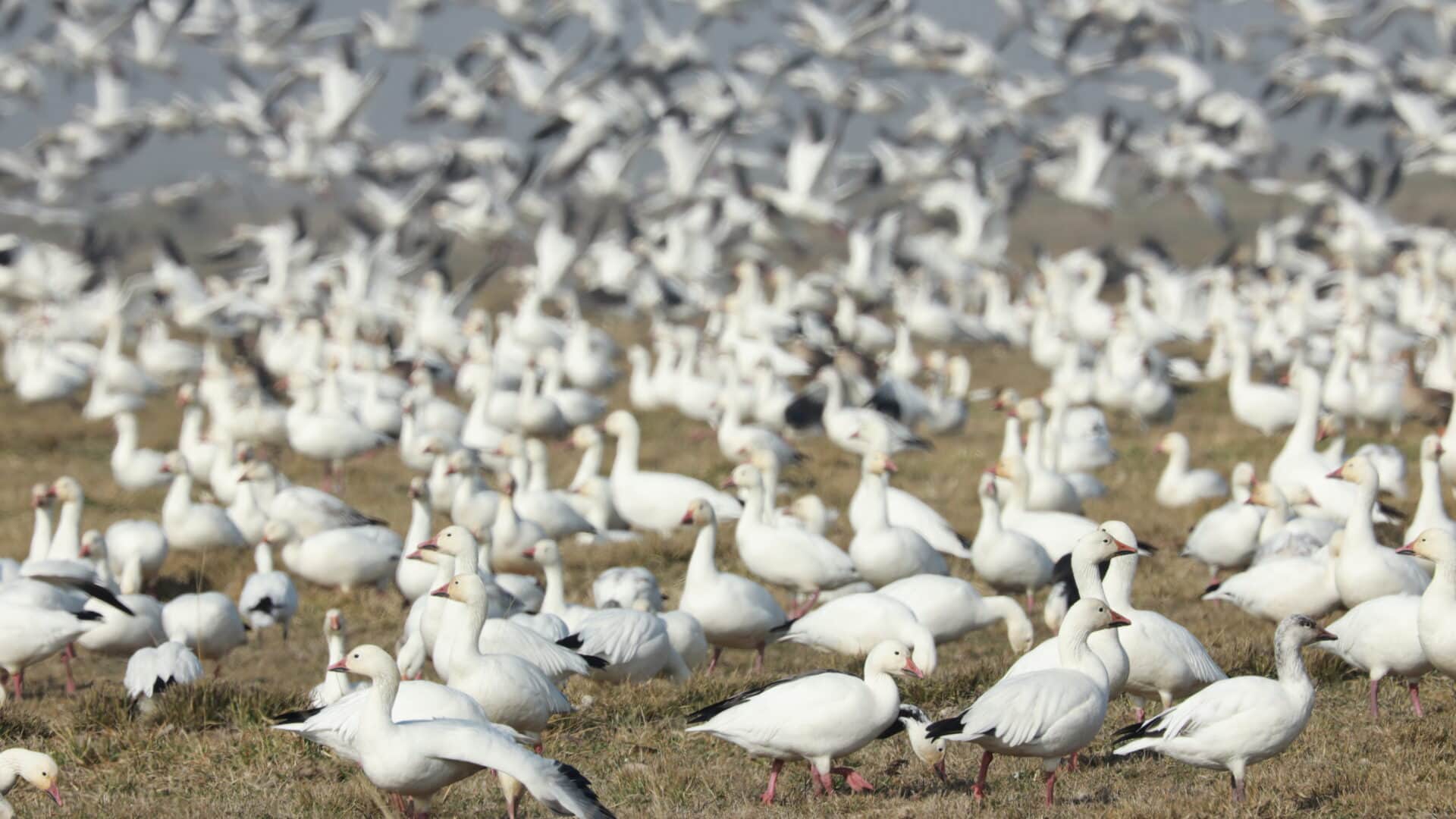 The refuge is open half an hour before sunrise until half an hour after sunset. Arriving before dawn means you’ll be in position for a cacophony of sounds as 60,000 birds wake up and prepare to head out for the day to forage in nearby fields. Greater white-fronted geese, cackling geese, snow geese, and Ross’s geese honk to each other nonstop, and a lot of northern shovelers, American avocets, and black-necked stilts quietly go about their business. When near reeds, listen for the chortling scoldings of marsh wrens (often heard but rarely seen). Once near the open fields, California ground squirrels scurry around, and huge flocks of geese can carpet the ground in white.