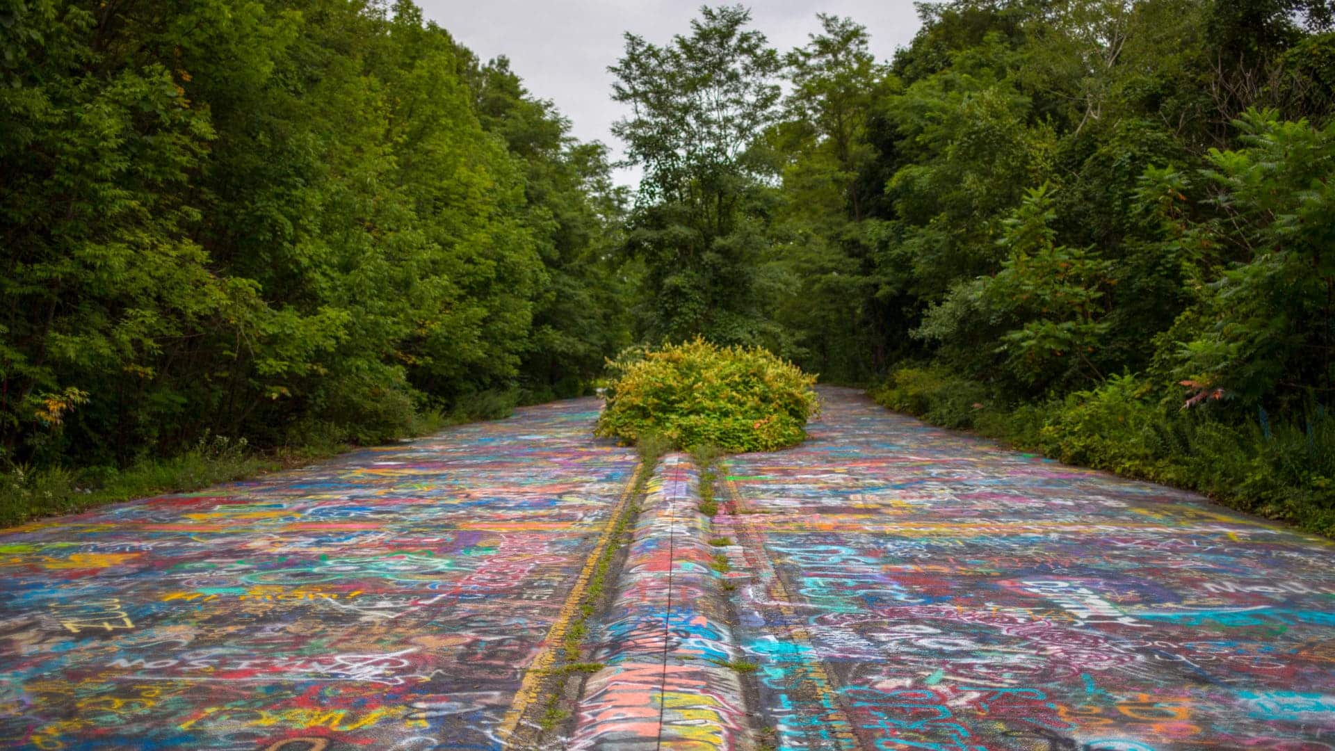 The first time I went searching for the town’s notorious abandoned road, known as the Graffiti Highway, I drove up and down Pennsylvania Route 61 without knowing exactly what I was looking for. Since my first visit, I’ve returned at least once a year. I now know my way around, but as the colorfully painted road has increased in popularity, new visitors can rely on other people to lead the way.