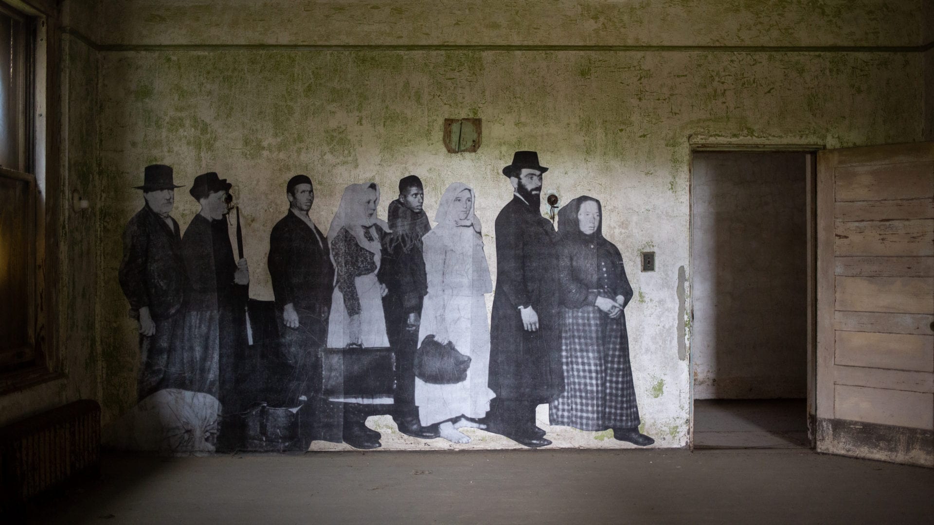 The buildings themselves are enough of a draw, but they also serve as a backdrop for an arresting art installation, Unframed—Ellis Island, by French artist JR. In 2014, JR approached the National Park Service, requesting permission to install large-scale photographs taken during the island’s heyday on the walls and facades of the unrestored hospital complex.