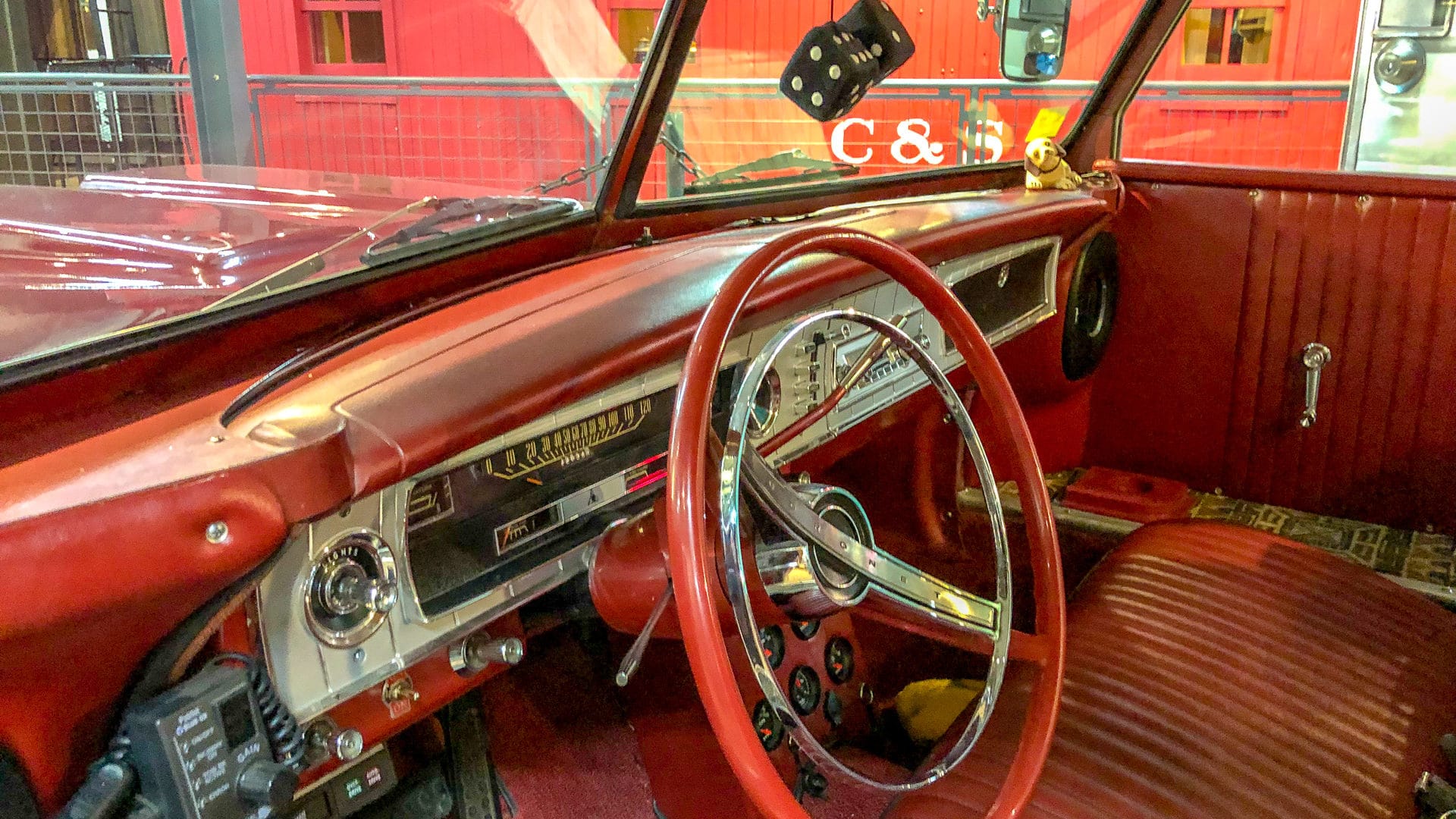 The place isn’t as dusty as Paul remembers it, and I find the whole operation strikingly well-organized and efficient with space. The Forney is about as old-school and non-tech as a museum can get. There is one audio clip about Big Boy #4005’s history, which is triggered by a button; and you can climb into the engine cab to see all the dials and levers—but that’s about as interactive as it gets here. The only other hands-on opportunities are being able to climb behind the wheel of a 1915 Model T for a photo op in front of a painting of an open road; and you can sit in a historic chair from the Colorado Midland Railroad, founded in 1883. They built the first standard gauge railroad over the Continental Divide, over Hagerman Pass.