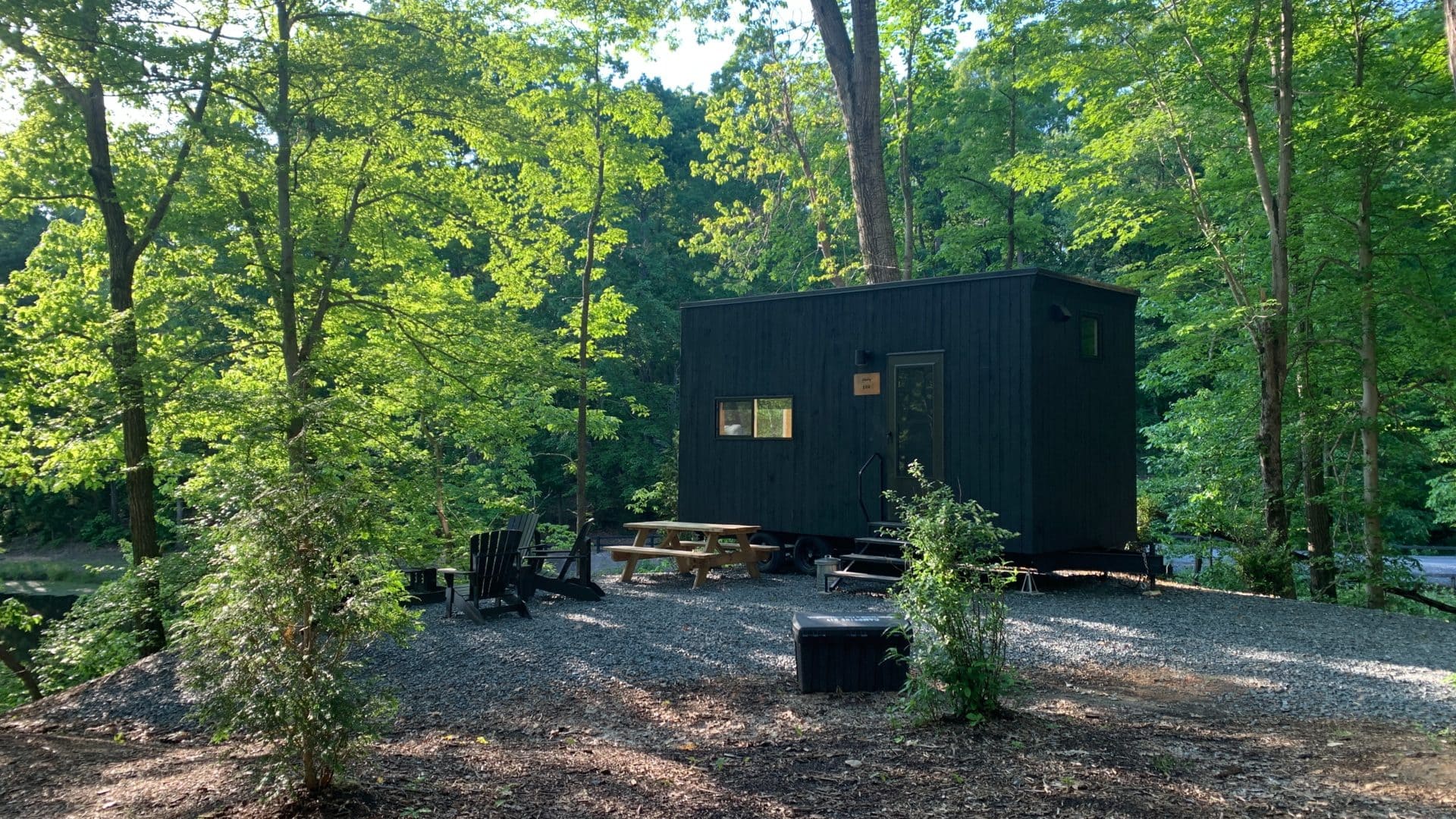 As soon as I arrive at Getaway’s North Carolina location, I realize I won’t be as alone as I had anticipated. I drive past a family sitting in Adirondack chairs around a campfire as I search for my designated wooden box. Around the corner, a couple is making lunch at their picnic table while their dog is attached to an incredibly long leash.