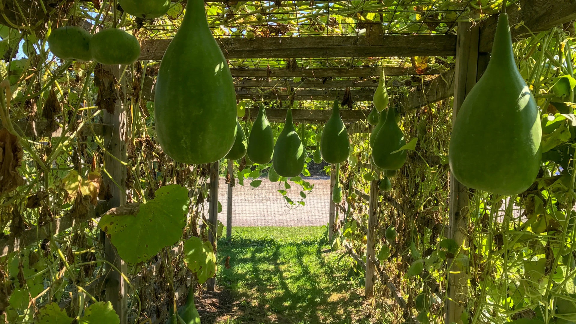 I follow Ottoson closely, ducking as I make my way underneath the viney trellises, careful not to disturb the growing gourds. Ottoson’s garden yields as many as several hundred gourds every year, but Gourdlandia’s comprises only 26 total plants.