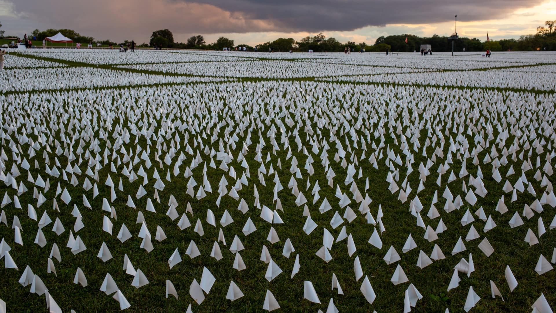 “When a nation is in the midst of trauma—and this is truly a large-scale, slow-motion, mass-casualty event—it’s hard to really conceptualize it,” Firstenberg told the Washington Post. “I knew as a visual artist that I had to create art that would help people understand the magnitude of this loss. So I arrived at the idea of planting flags. A flag will ripple in the wind and interact with the environment. And the mass of them would really look like what it really was at that time: a flag of surrender.”