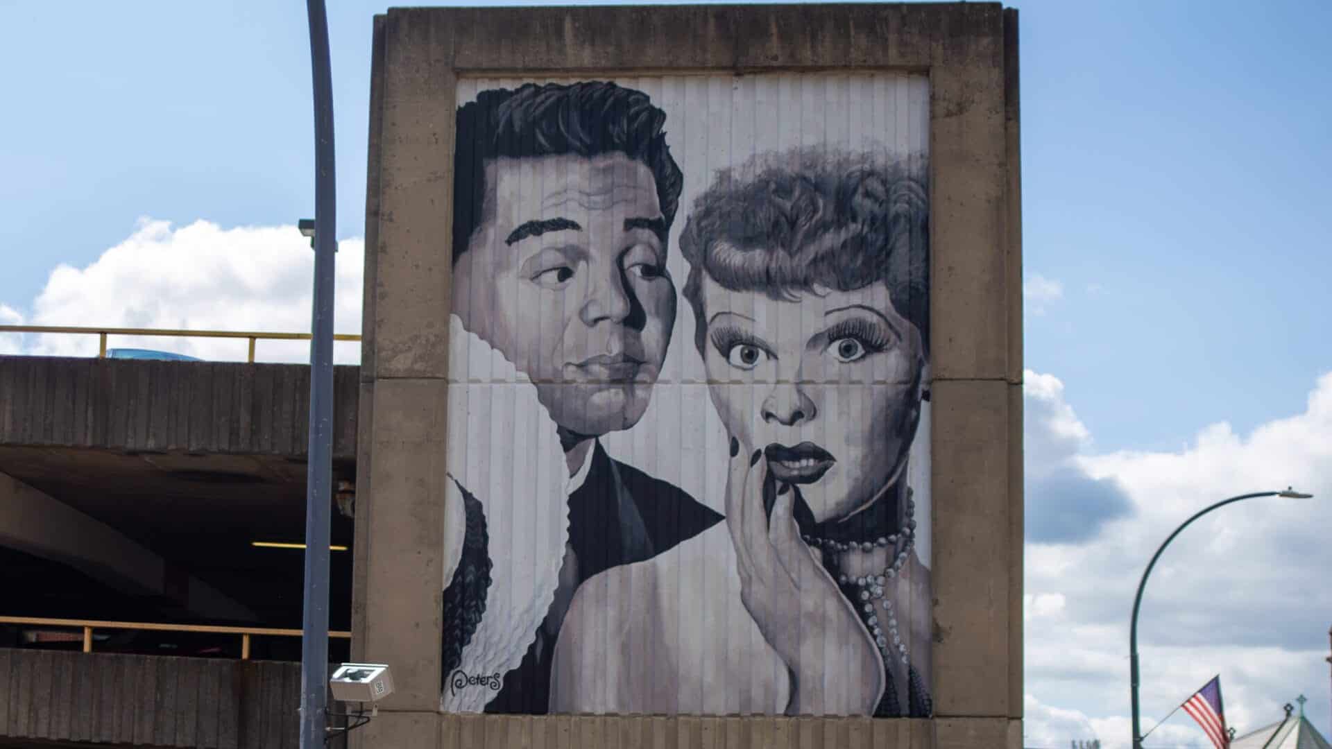 There are several murals in town dedicated to Lucy and Desi, including one that claims to be the World’s Largest I Love Lucy mural: The 1,800-square-foot artwork was painted over more than 500 hours—using 30 gallons of paint—by a father-son team of Jamestown natives. Located on the side of a vacant building, the mural depicts a 1955 episode where Lucy, Ricky, Fred, and Ethel drive across the George Washington Bridge while singing “California, Here We Come.” Other notable works around town include a larger-than-life 1999 33-cent postage stamp featuring Lucy and Desi, and one inspired by the classic Vitameatavegamin episode.