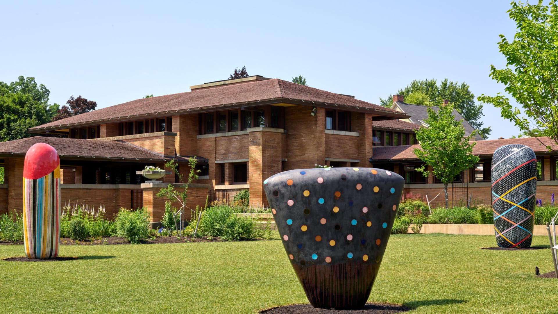 The result of a collaboration between the Martin House and Buffalo’s renowned Albright-Knox Art Gallery, The Space Between is a new interactive art exhibit located on the Martin House grounds. With Wright’s architectural masterpiece serving as an impressive backdrop, seven ceramic sculptures created by Japanese artist Jun Kaneko were installed throughout the more than 14,000-square-foot lot last month. Each one features soft, rounded edges, vibrant colors, and dazzling abstract patterns that blend sculpture, architecture, and nature.