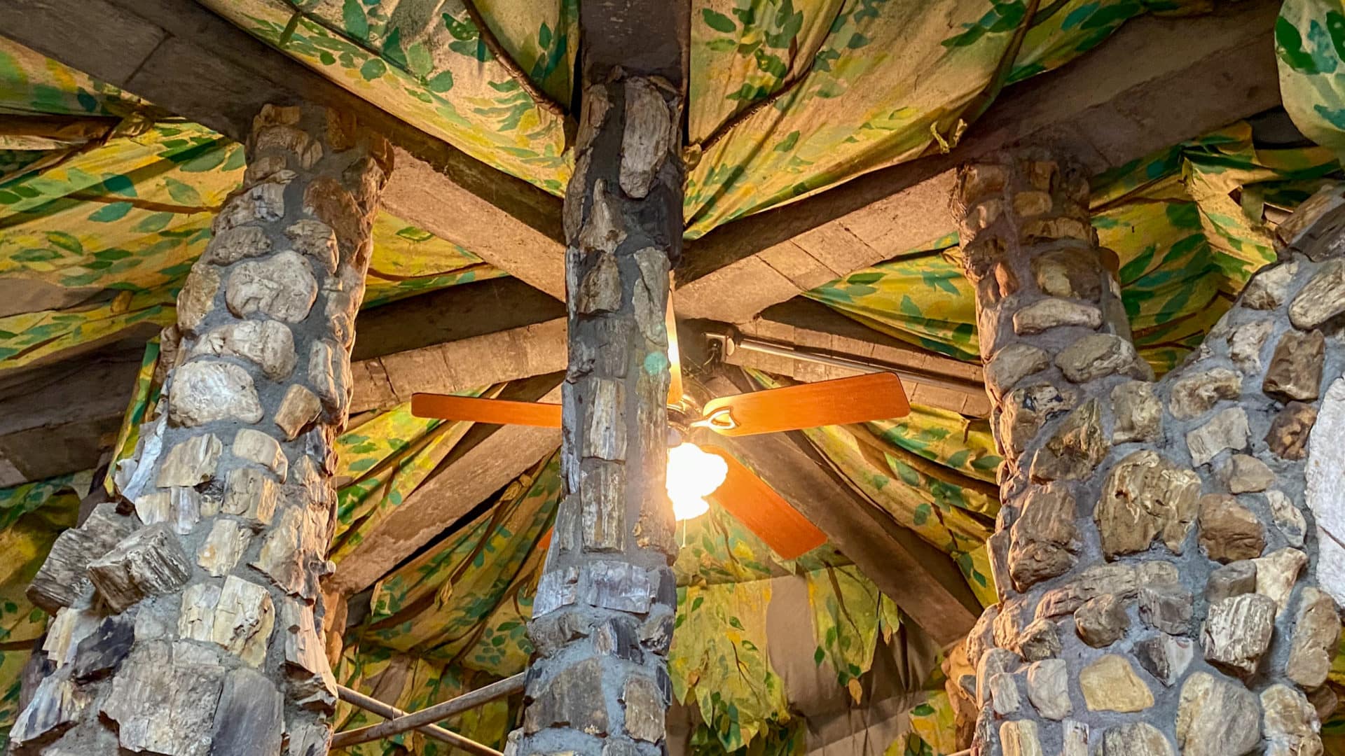 Each and every corner presents a unique feature—from the walls constructed with obsidian, crystals, and thunderegg to the agate pillars that help support the building. Some of the rock specimens even glow when you shine a light on them, so visitors are encouraged to bring their own flashlights.