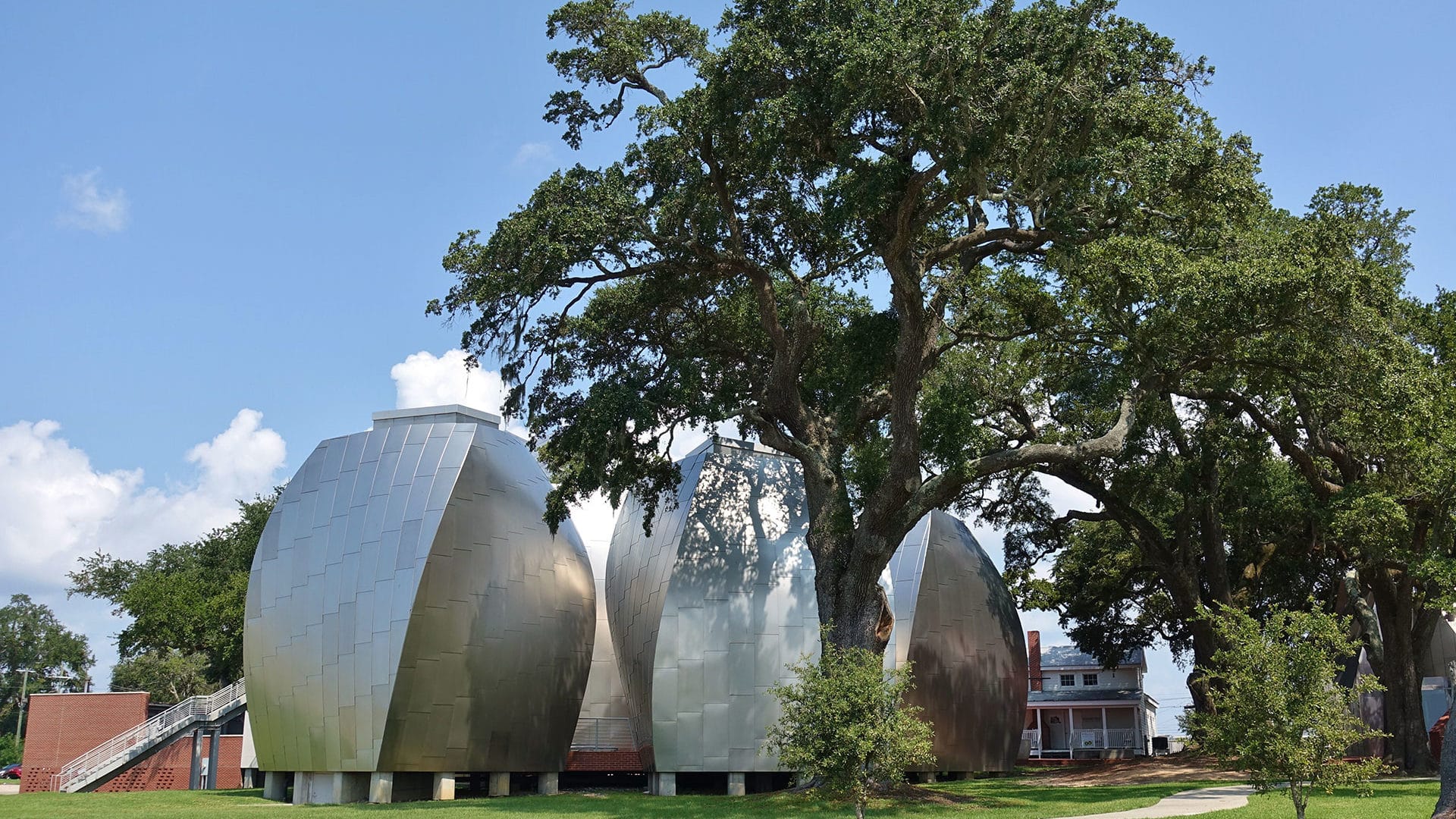 Located along the Gulf Coast in Biloxi, Mississippi, the museum cuts a striking presence. The building is made of curving, twisting brick, and a large silver pod peeks out like a spaceship from a huddle of ancient oaks. It’s as if the trees have sprung up around the buildings and not the other way around. Designed by Guggenheim Museum Bilbao architect Frank Gehry, the museum pays tribute to local artist George Ohr. Known as “The Mad Potter of Biloxi,” Ohr helped spearhead the abstract expressionism movement—but not until after his death in 1918.