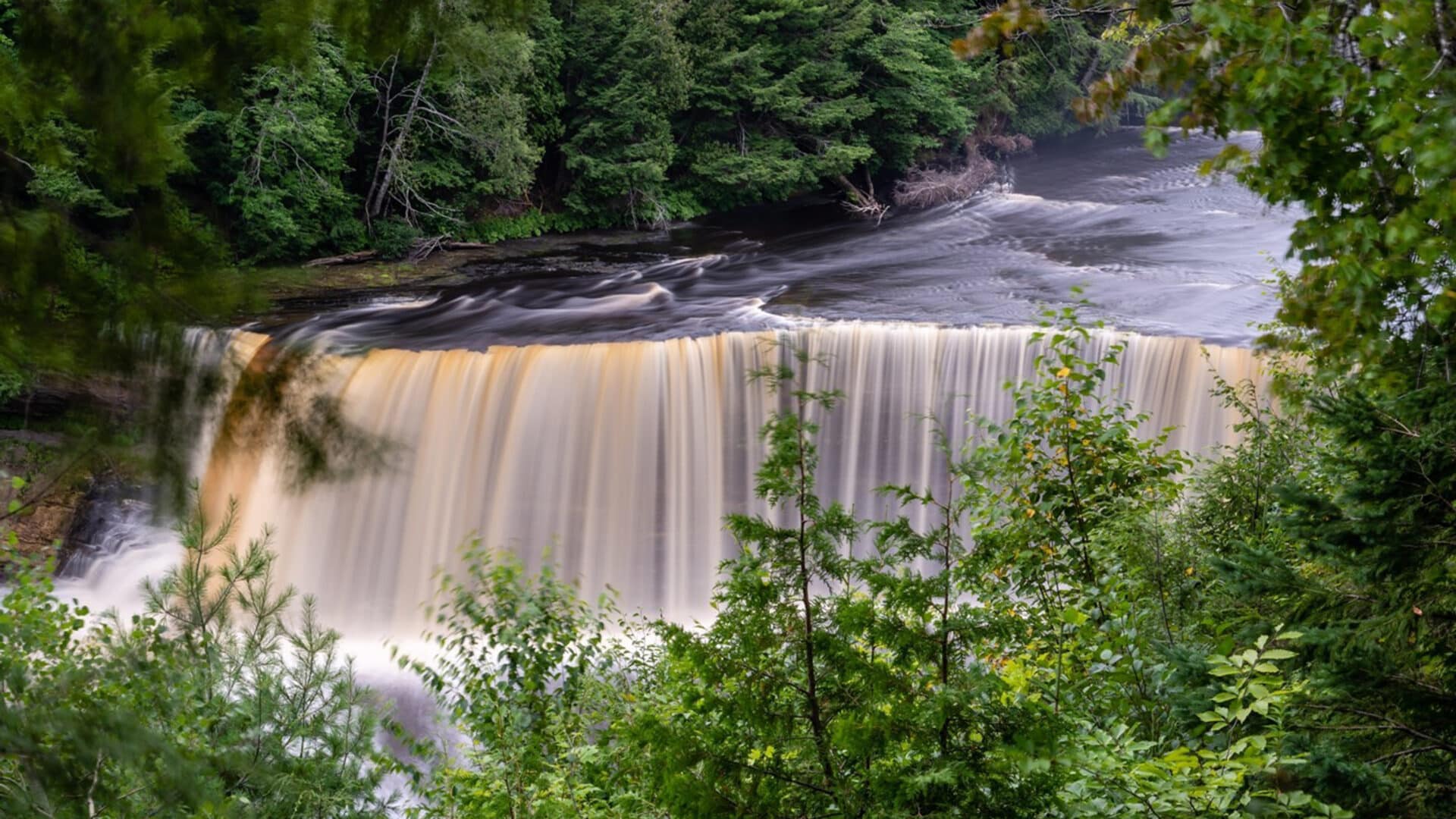 There are more than 300 waterfalls in Michigan, and all but one of them is in the Upper Peninsula. The largest, and arguably most spectacular, is Tahquamenon Falls, about 75 miles northwest of Sault Ste. Marie. Contained within Tahquamenon State Park, the falls actually consist of two separate portions, the Upper and Lower Falls. The Upper Falls, about 200 feet across, is the largest waterfall east of the Mississippi, and cascades down nearly 50 feet into the Tahquamenon River. A viewing platform lets visitors get an up-close view.