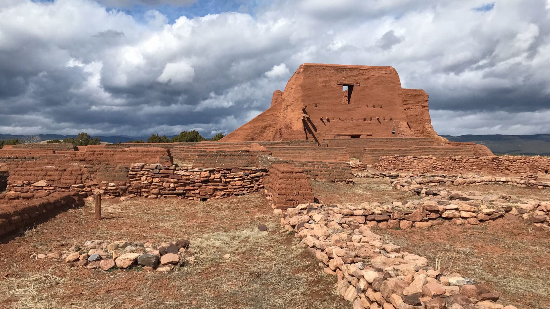 Today, the remnants of a different church stand at Pecos, one that was built 12 years after the revolt when the Spanish returned to the mesa. While time may have eroded the church down from its original 3,000 square feet, its remaining footprint still feels massive. Everything from the adobe bricks to the intricate floor tiles all seem to fit together like a mosaic.