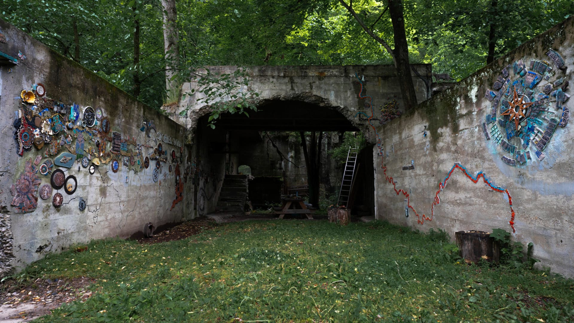 When Sager finally came to terms with the fact that her waterfront property also included an old coal mine, her artistic vision came into focus. “My head quickly saw it as a giant cement canvas just waiting there,” she says as we enter The Ruins.