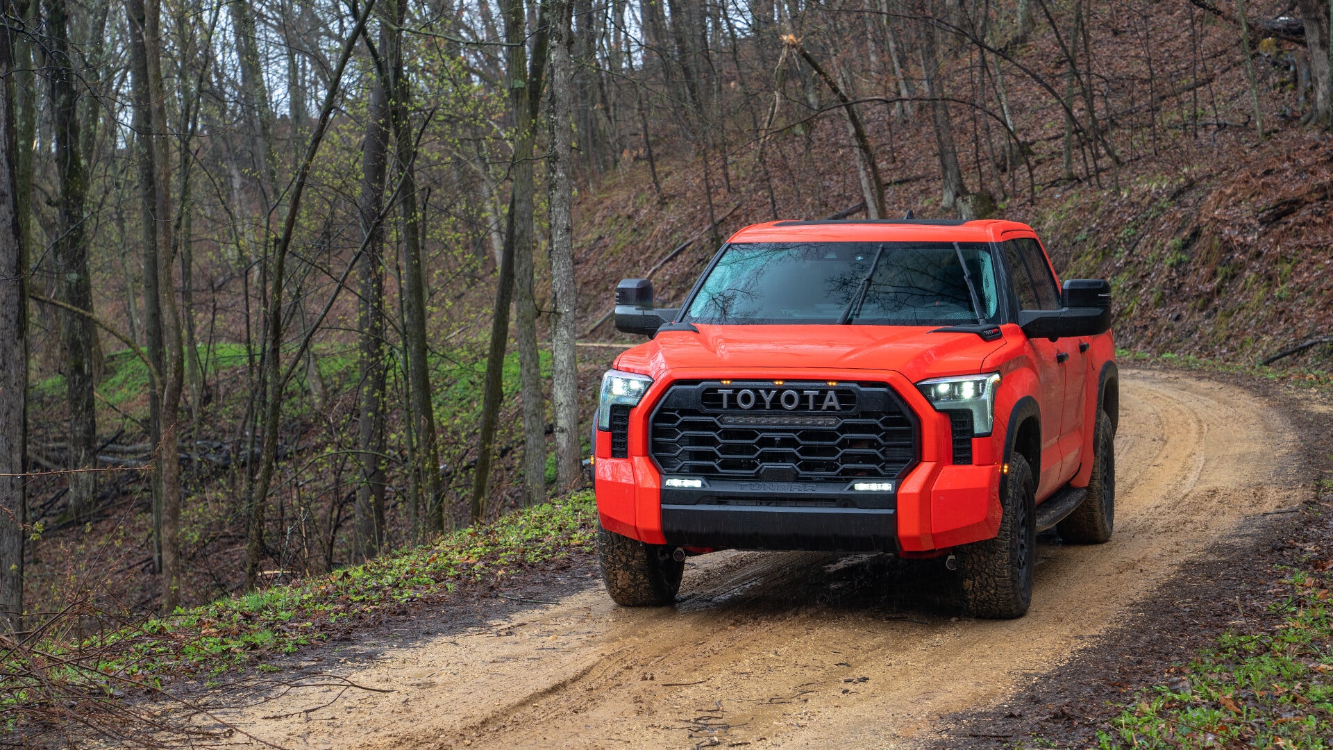 Gone are the days of V8 engines in Toyota pickups. In place of the naturally aspirated 5.7-liter V8 that first graced the Tundra in 2007 is a 3.5-liter V6 with a pair of turbochargers and an optional hybrid system. The new truck’s numbers look good on the spec sheet and Toyota’s TRD Pro-exclusive Solar Orange paint looks incredible in person.