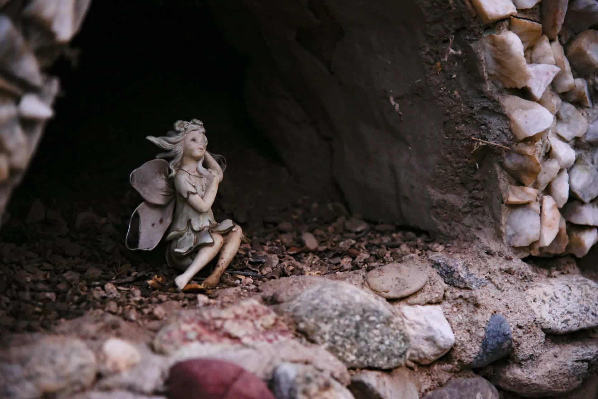 I examine the Enchanted Garden—a hidden grotto with tiny fairy homes and pools of water—the little details of which seem to have been inspired by pure imagination. Jenni Sunshine, the president of Valley of the Moon, advises me to crouch down. I follow her advice and discover another world entirely—one filled with hidden tea parties, crystals, and other trinkets. Sunshine says that Valley of the Moon tries to hide things throughout the park that only a child might uncover.