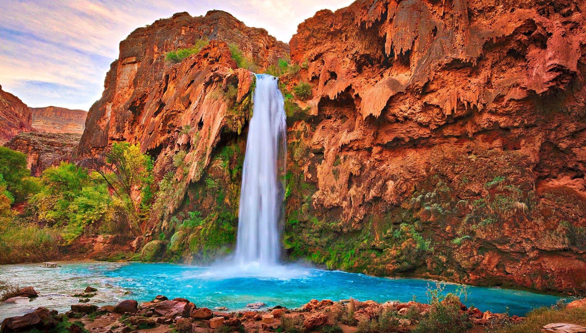 The picture-perfect body of water that makes up these majestic waterfalls has humble beginnings. The creek starts as a trickle of rainwater and snowmelt water about 50 miles from Havasu Canyon. It winds its way into the gorge, where it hits Havasu Springs. The springs bubble up and feed the creek, creating a stream. The distinctive turquoise color and perpetual 70-degree temperatures are the result of the spring. Calcium carbonate is responsible for the unique hue. As you follow the water on its way to the Colorado River, you will encounter the waterfalls that have made the creek so famous.