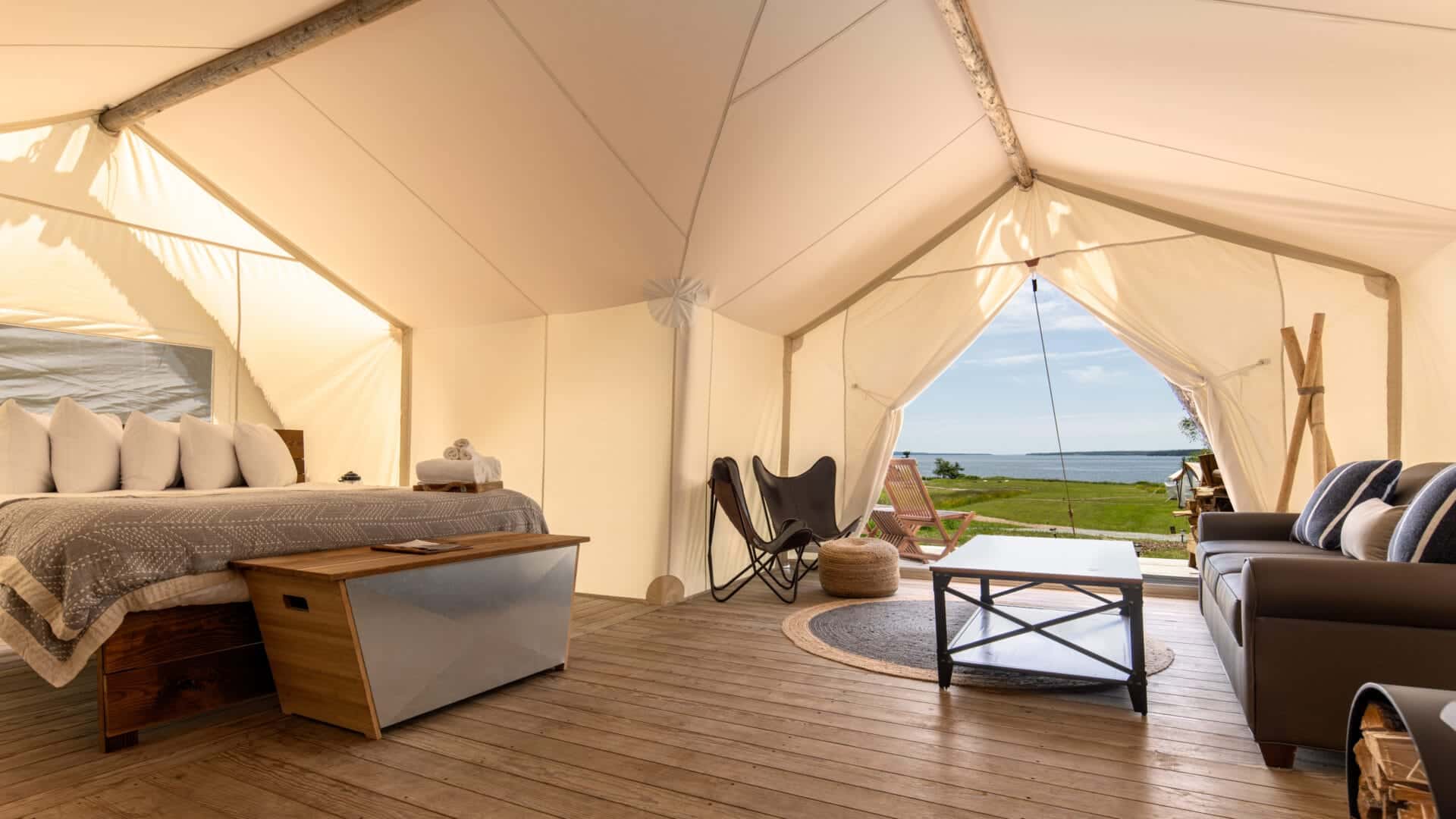 “Glam camping” doesn’t have to mean gourmet s’mores hand-roasted for you by an expensive, all-inclusive resort’s butler (although that does sound pretty nice). It can also mean you still get to rough it a bit, making campfires beneath the stars and having a chance to get away from your laptop and those constant work emails—but, you know, with a bed and a bathhouse only a few steps away.