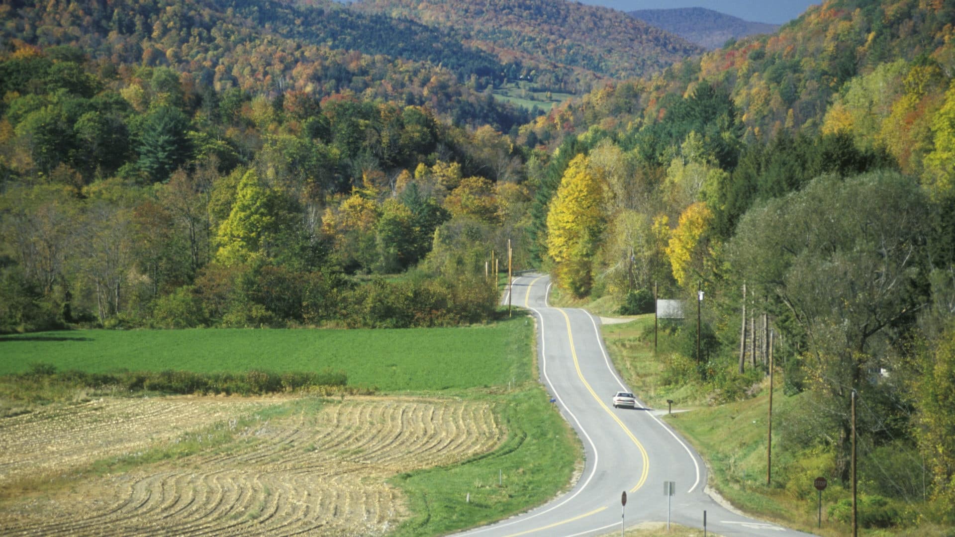 Meandering for more than 200 miles over rolling hills, past forests and farms, and to some of the northeast’s best ski areas, Route 100 starts in the small town of Stamford just across the Massachusetts state line. The road traces the eastern edge of the Green Mountains as it heads (mostly) north to Newport and the shore of Lake Memphremagog, a deep glacial lake shared with Quebec, Canada. Most attractions around Stamford are actually in nearby Massachusetts; the town is just a 10-minute drive from North Adams, home to MASS MoCA and Natural Bridge State Park.