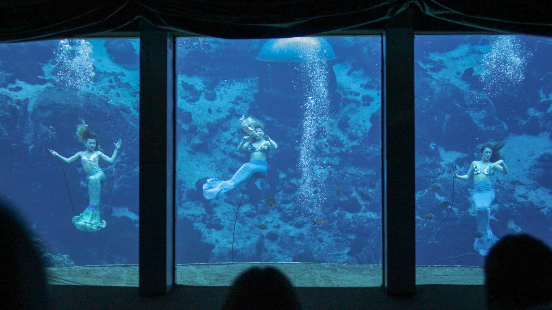 It has never been simple to become a mermaid. In the beginning, even before the addition of fins, the performers took classes in etiquette and ballet. “The training process is intense,” Cheyenne says. “It takes, on average, four to six months of training before you even perform in a show.” The mermaids form a sorority, with alumni returning on occasion for special appearances, uniting under the credo, “Once a mermaid, always a mermaid.”